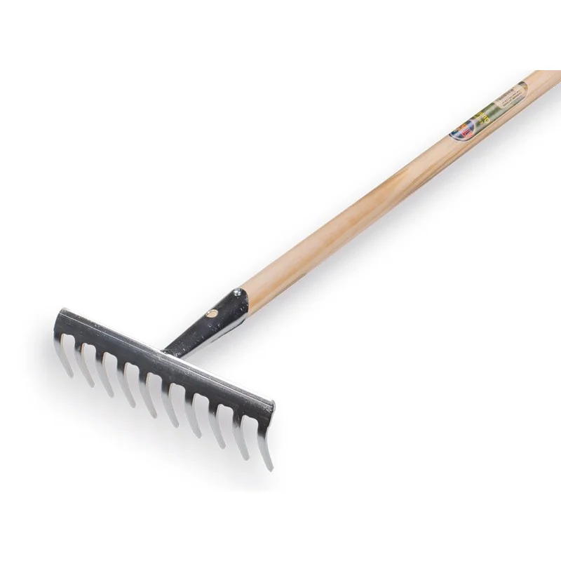 De Tuinhark van Atlas is uitgerust met 12 gebogen tanden van gehard staal, wat hem uiterst geschikt maakt voor diverse tuinwerkzaamheden. De hark heeft een gelakte essen steel van 170 x 2,8 cm, die zorgt voor een comfortabele grip en eenvoudig schoon te maken is.