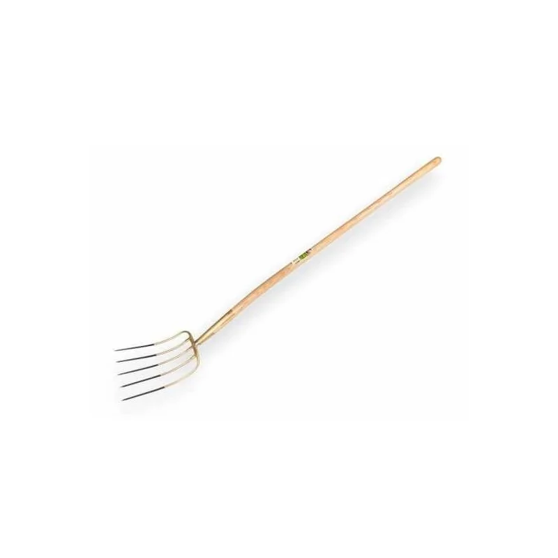 Mestvork met 5 tanden. Compleet met 135 cm Essen steel. Merk OFFNER, kleur brons. Scherpe tanden, professionele kwaliteit