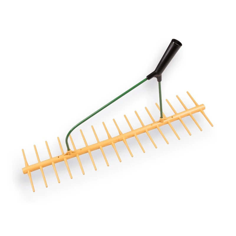 Polyhark, hooihark kunststof met aan beide zijden 16 tanden. Schuin model, zonder steel. Breedte 64cm. Voor veelzijdig harken van licht tuinafval en gemaaid hooigras van de slootkant naar het vlakke grasland. Licht gewicht. Merk JOST