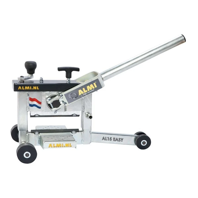 De Almi AL15 EASY steenknipper is uitgerust met één spindel, hierdoor is eenvoudig de kniphoogte met één hand in te stellen. Door middel van de vaste draagplaten wordt de steen schuin geknipt, dit resulteert in strak en nauwkeurig straatwerk. Doordat de draagplaten zijn uitgerust met een liniaal en gradenverdeling kan de steen eenvoudig op lengte afgeknipt worden. Door het lichte gewicht van 14 kg is deze steenknipper eenvoudig te vervoeren en verplaatsen.