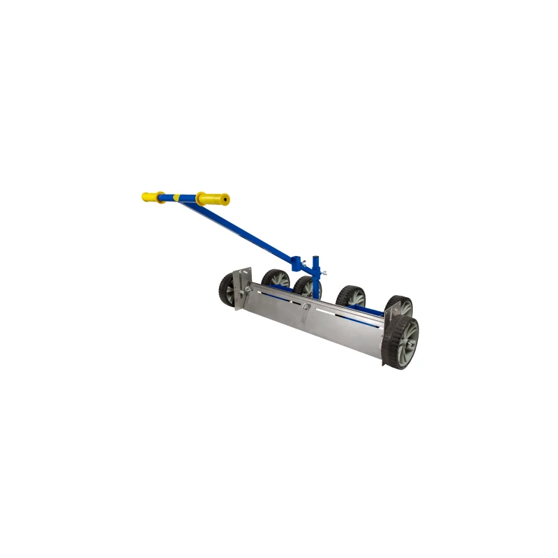 - Voorzien van 4 dragende wielen en 2 in hoogte verstelbare zijwielen.