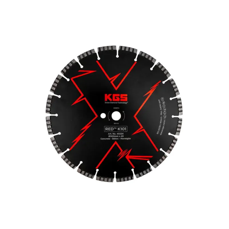 Diamantzaag KGS RED™ K101 voor het zagen van beton, bakstenen en tegels. Een zaag met een lange levensduur. Snijdt snel en precies. De zaag is compatibel met de meest gangbare motorslijpmachines, waaronder Husqvarna, Dolmar, Stihl, Wacker en Makita. Zowel droog als nat te gebruiken.
