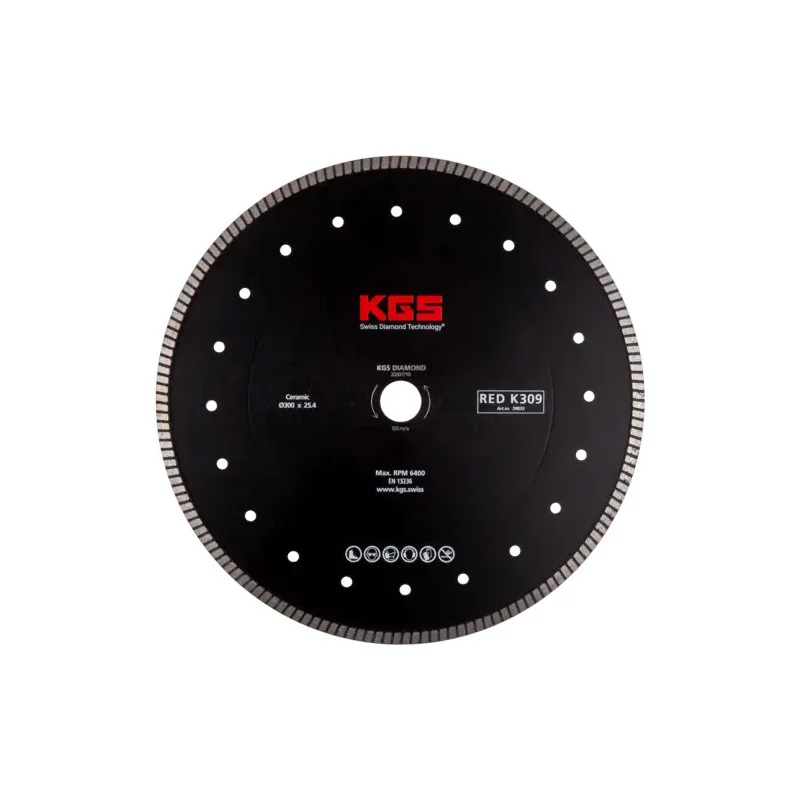De KGS RED™ K309 Diamantzaag is ontworpen met een turborand voor een nauwkeurige en zuivere zaagsnede, ideaal voor gebruik met de meeste tafelzaagmachines en doorslijpers. Dit zaagblad is speciaal ontwikkeld voor nat gebruik, waarbij waterkoeling essentieel is om de levensduur te verlengen.