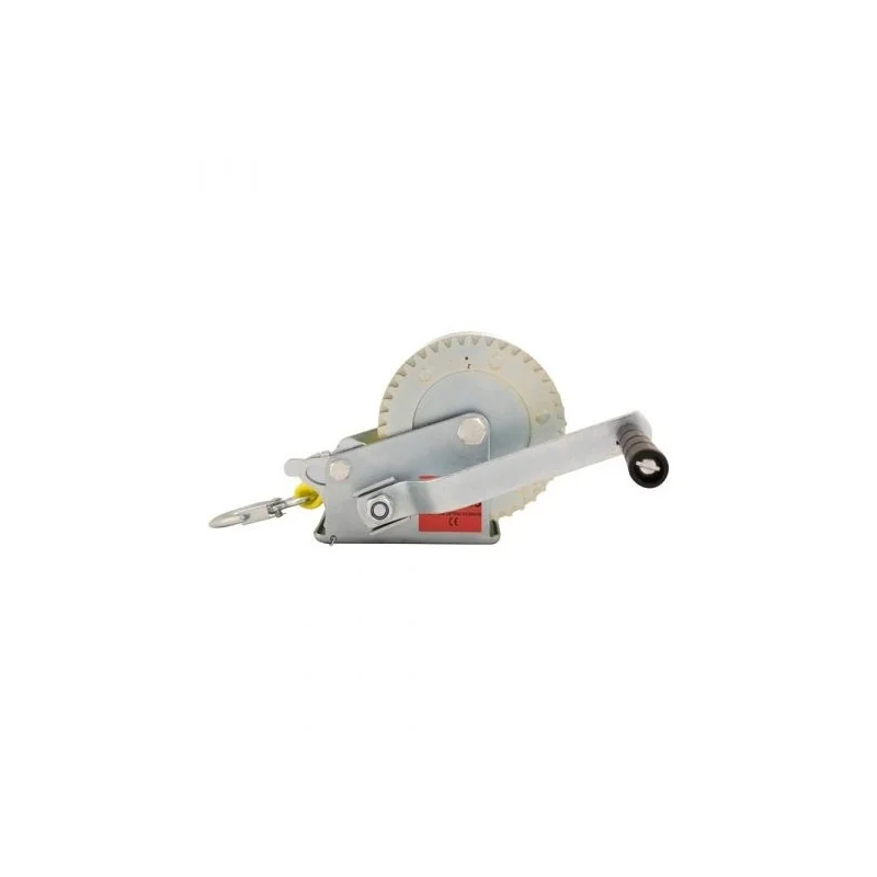 Handlier met blokkeermechanisme en 6 meter band,5 cm. breed, met haak voorzien van veiligheidsklep.