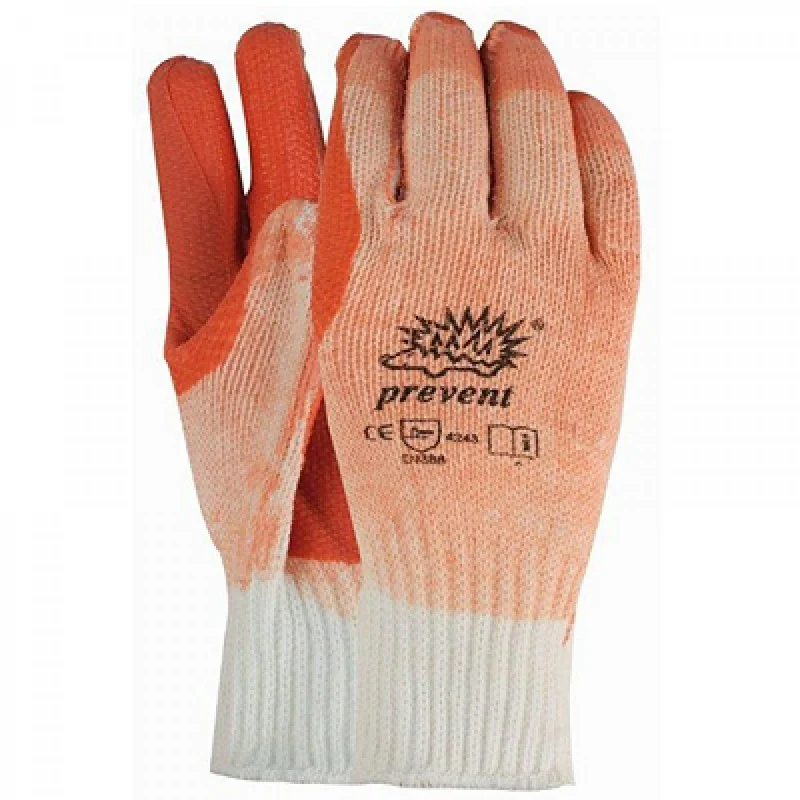 Werkhandschoen PREVENT- Gemaakt van een naadloos gebreide polyester drager met een latex-coating voor een stevige grip- Deze handschoenen zijn uitermate geschikt voor buitenklussen enstratenmakers- Kleur: rood/wit
