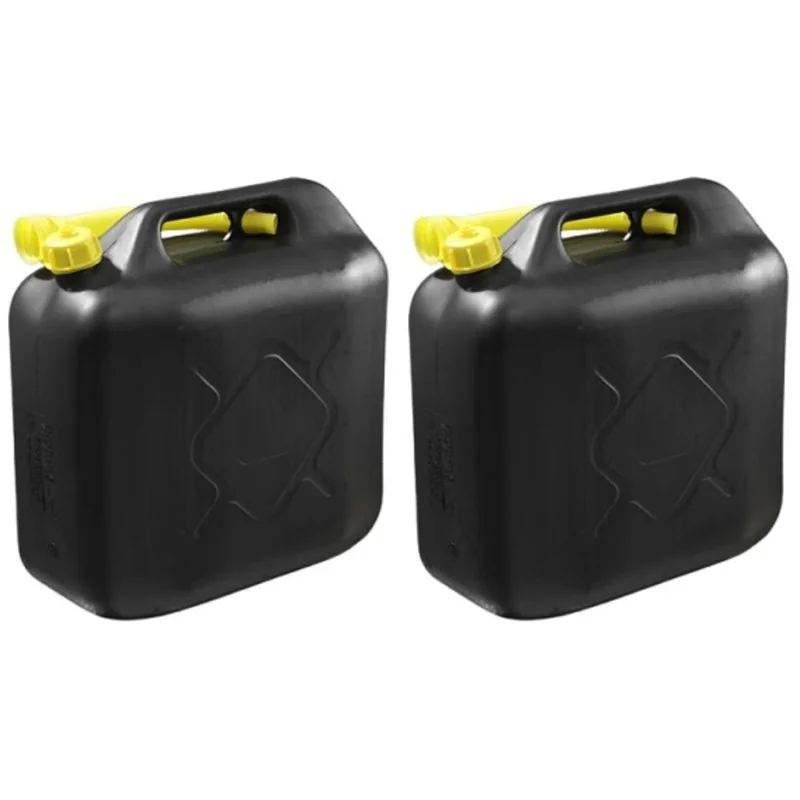 Kunststof jerrycan met afsluitdop en flexibele tuit.